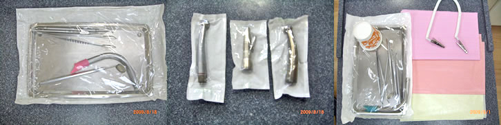 また、治療用器具は各セット毎に滅菌パックに入れて滅菌し、治療直前までパックしたままです。