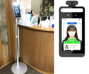非接触式で0.3~0.5m離れたところから測定可能で、受付時に検温していただいております。